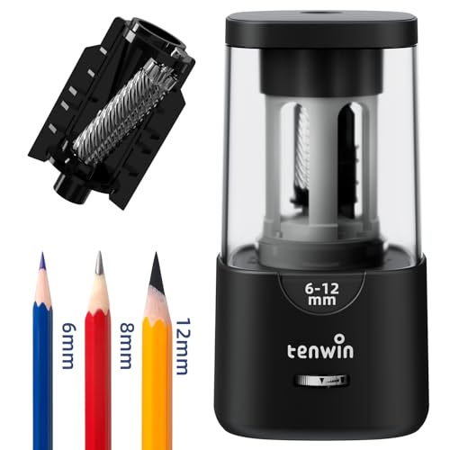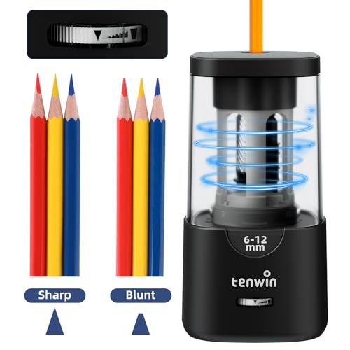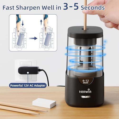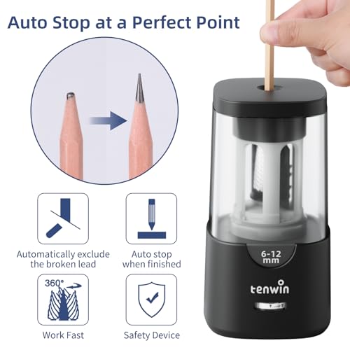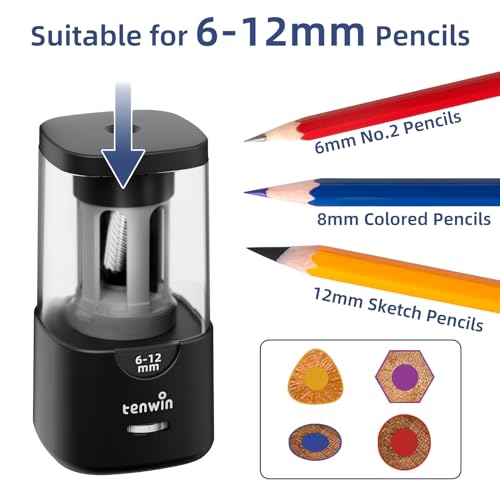 Black Electric Pencil Sharpener - Auto Stop, Sharp & Fast, 6-12mm Colored Pencils, Home & Classroom